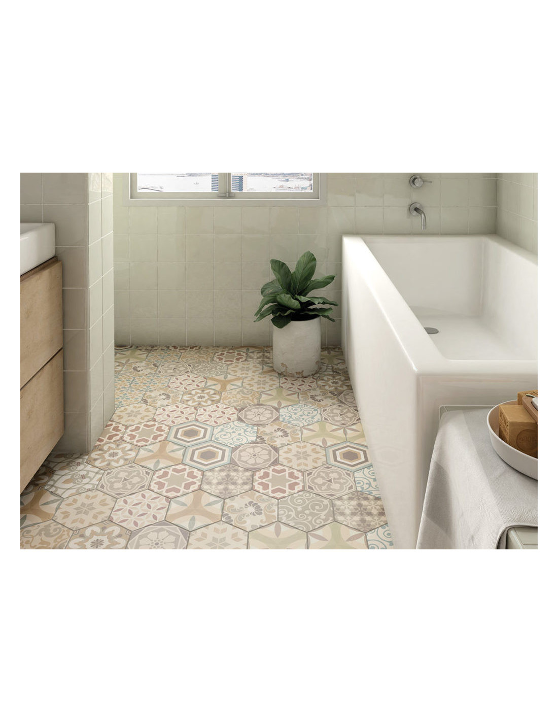 Gresie si Faianta #hexagonala de baie, bucatarie, living. Gresie #Patchwork Harmony.
