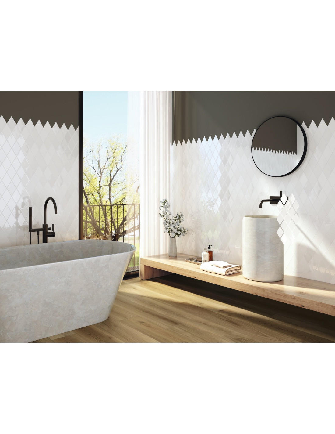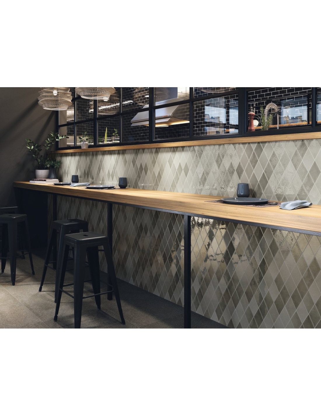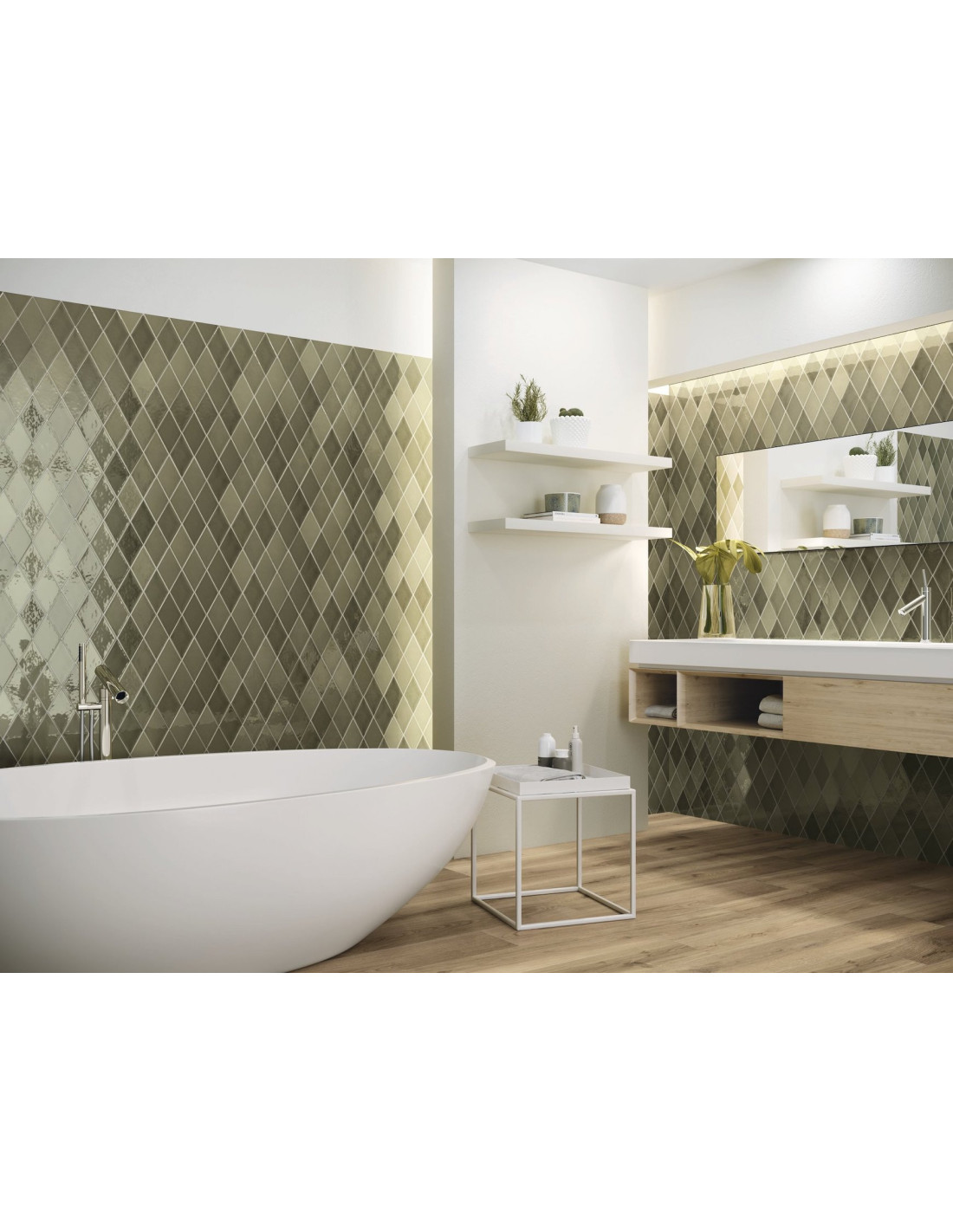 Faianta Rombica Looks Trip, dimensiuni 9.8x16.8 cm, cu finisaj lucios sau crackled. Culori: White, Mist, Smoke, Night, Acqua, Victorian Green. #faiantarombica