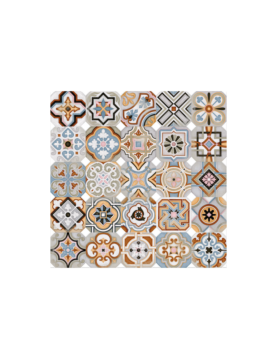 Gresie si Faianta Vodevil, portelanata patrata sau gresie #octogonala. Gresie #patchwork Cafe Boheme cu dimensiuni 20x20 cm. Gresie #bucatarie, living, baie.