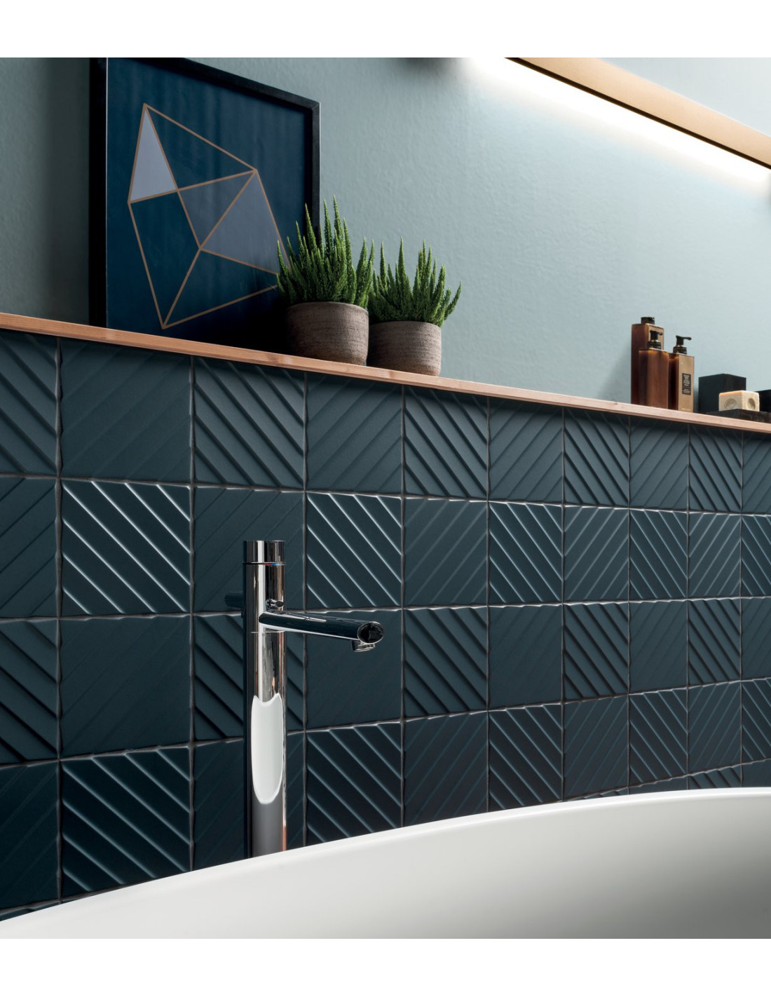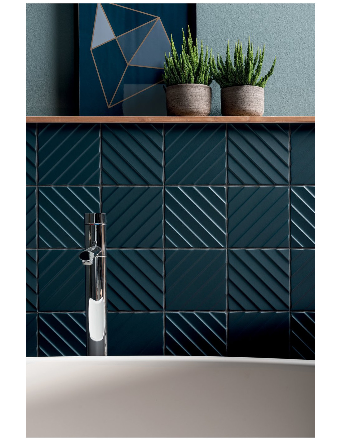Faianta 4D Diagonal cu dimensiuni 20x20 cm, culori: Deep Blue, White. Faianta reliefata. Pentru informatii legate de preturi si termene de livrare va rugam sa ne contactati pe e-mail la adresa info@progettocasa.ro sau telefonic la numarul: 0744.494.094