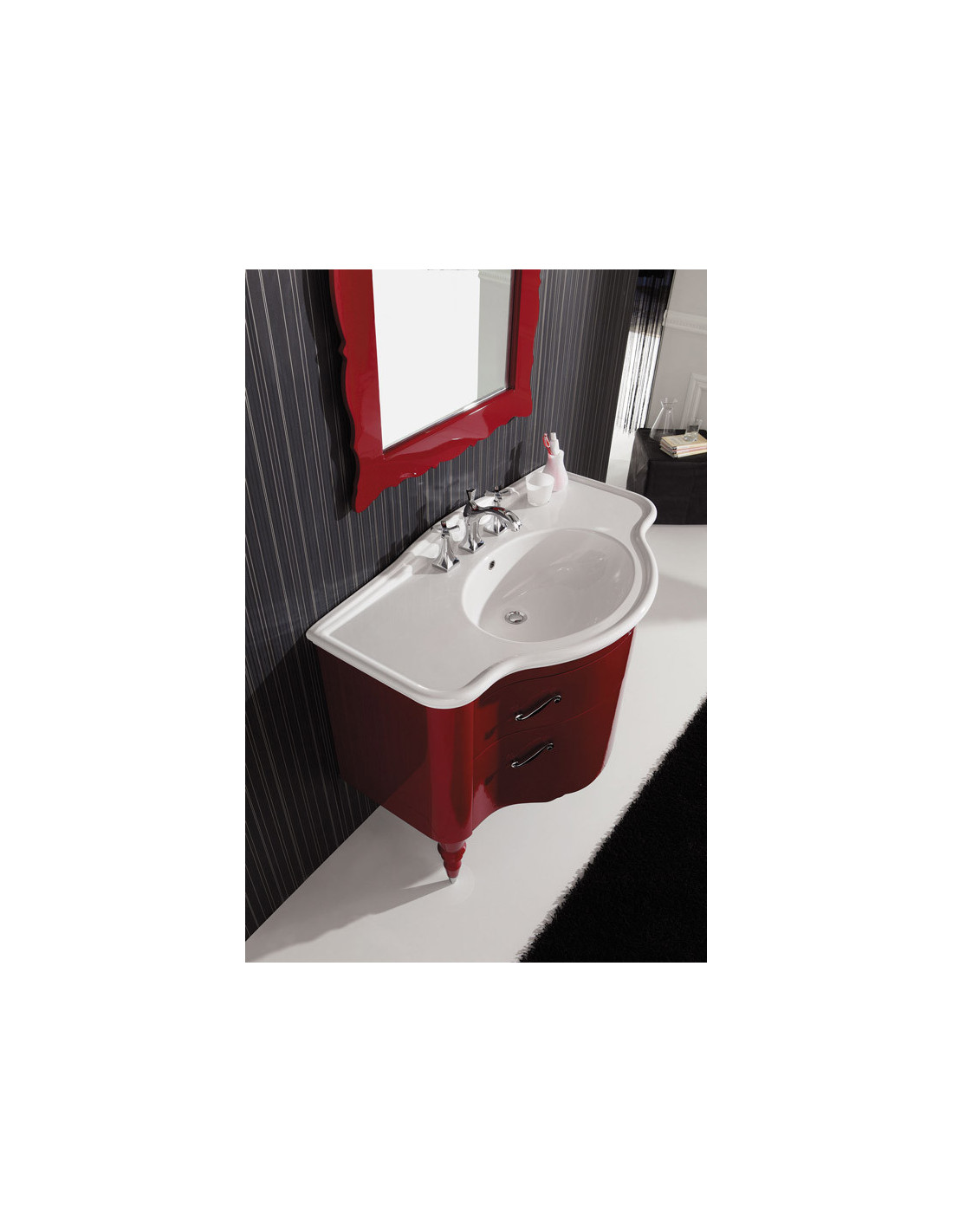 Mobilier Baie Clasic Italia Legnobagno Deco D01, rosu purpuriu lucios, cu lavoar alb de ceramica.
