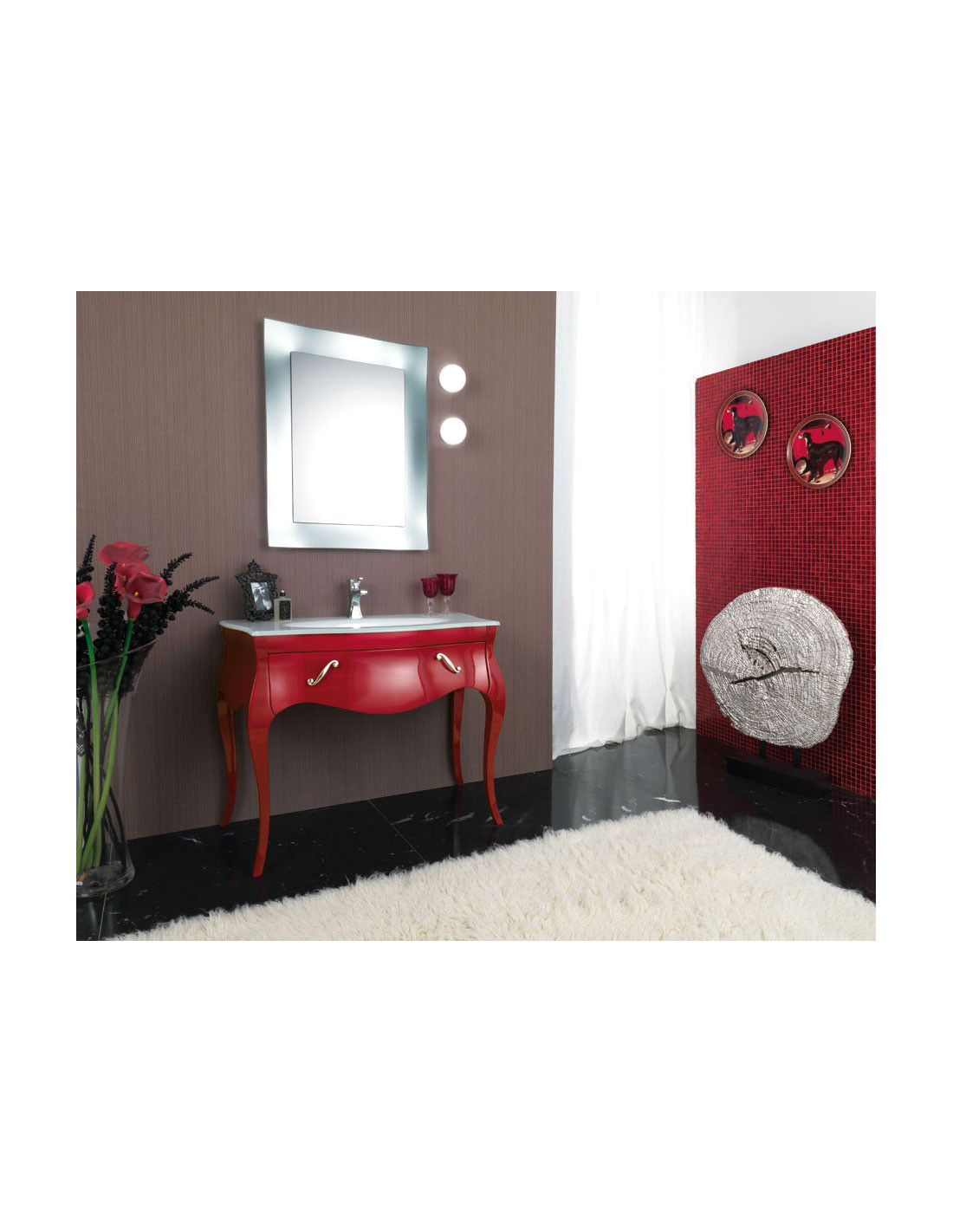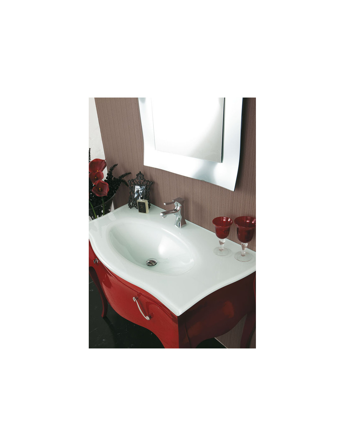 Mobilier Clasic Baie Italia Legnobagno Vanity 7, latime 109 cm, rosu purpuriu lucios, cu lavoar din sticla,alb.