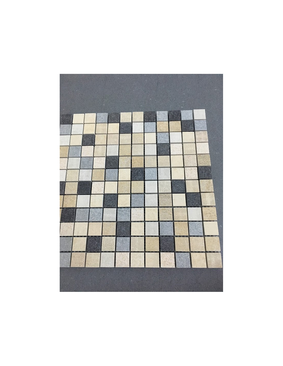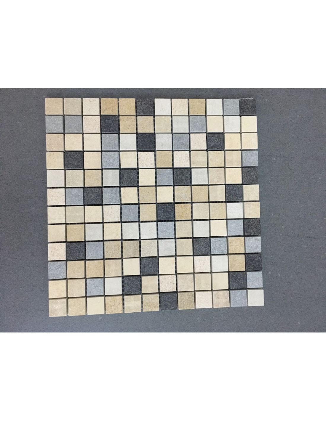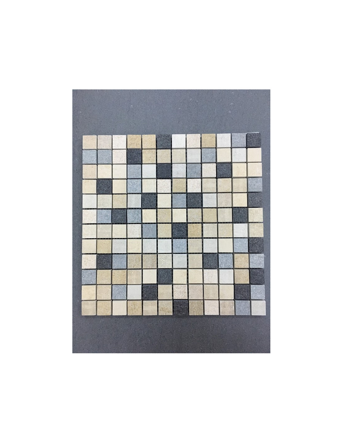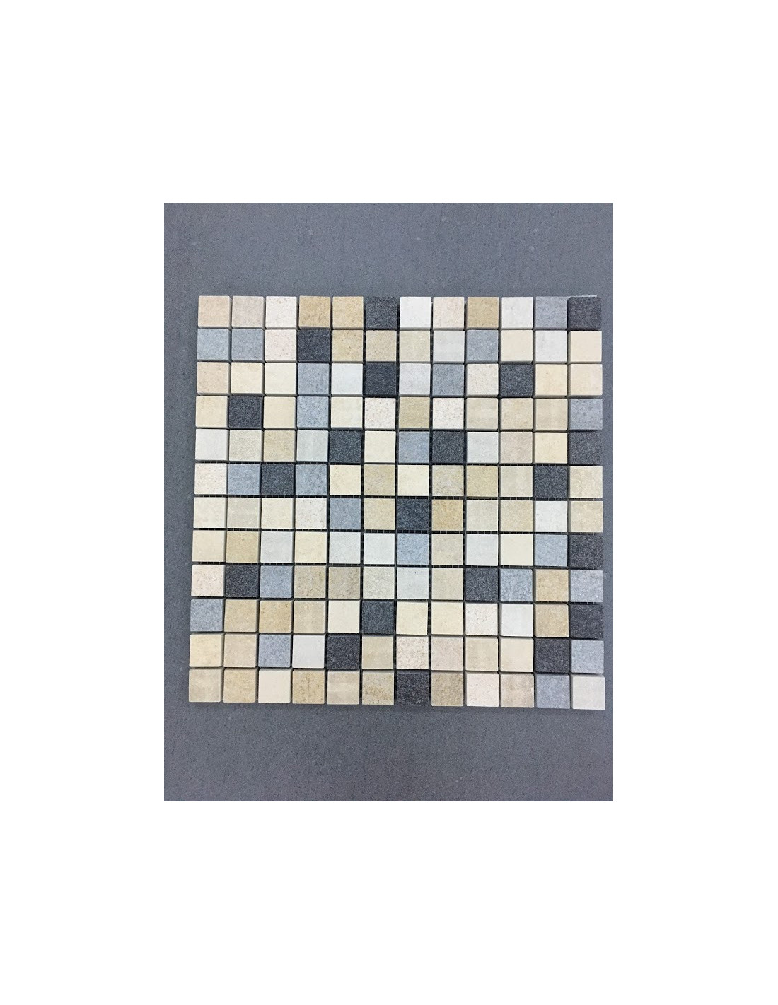 Mozaic Ceramic Quarzite Mix, patratele de 2.3x2.3 cm puse pe plasa de 30x30 cm.