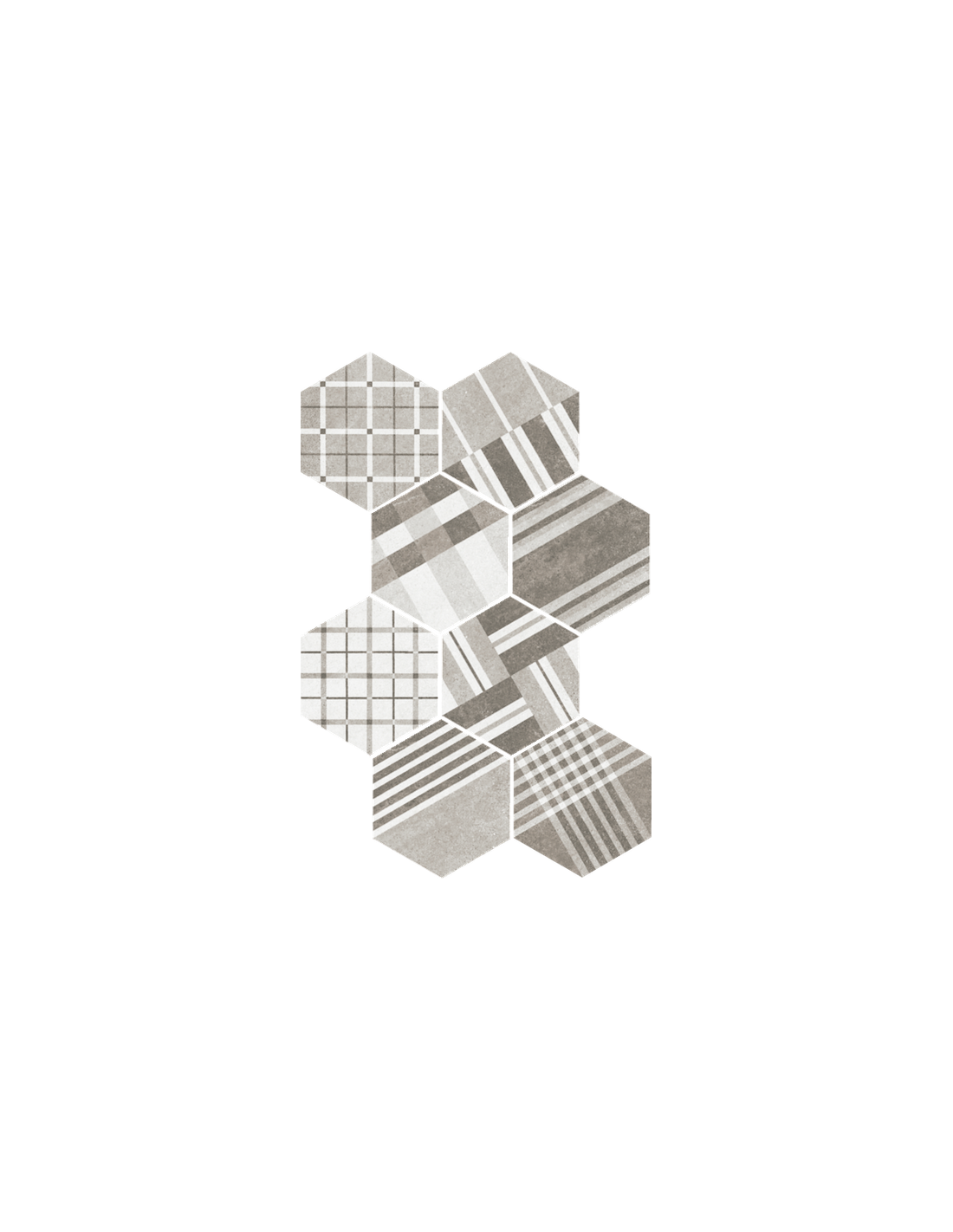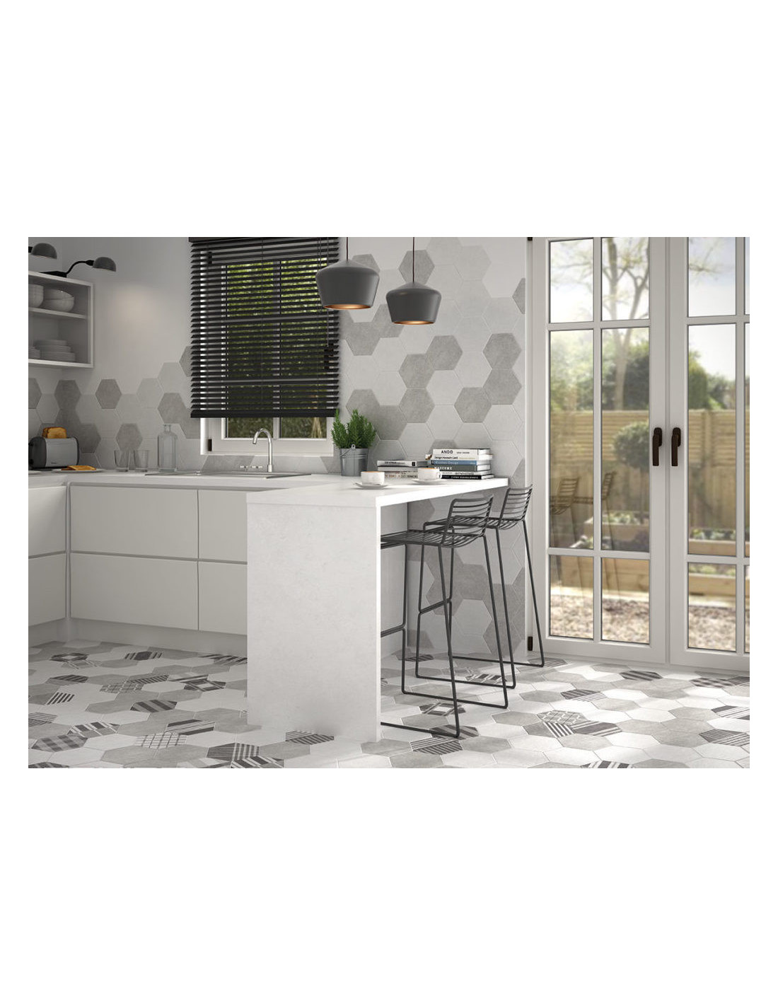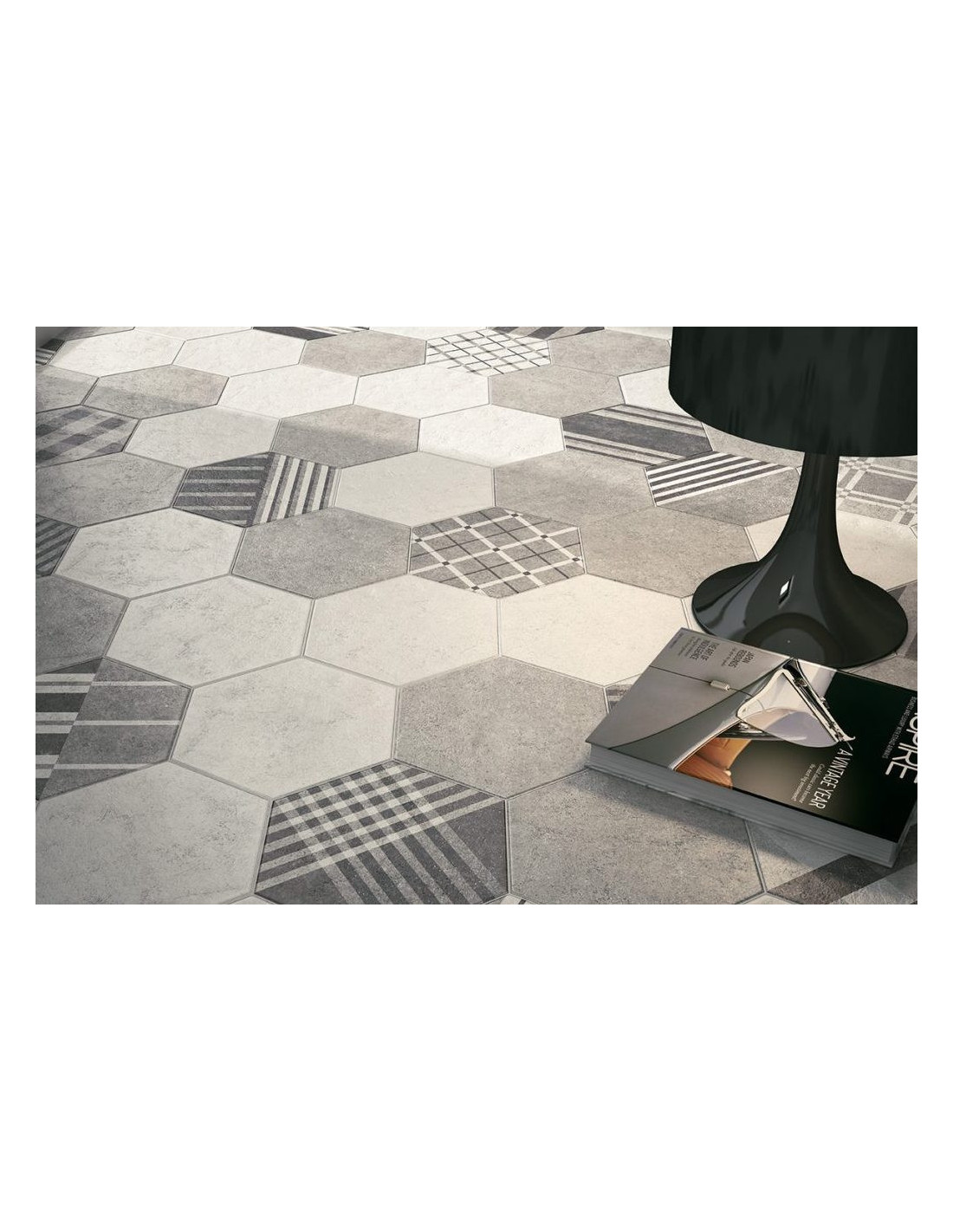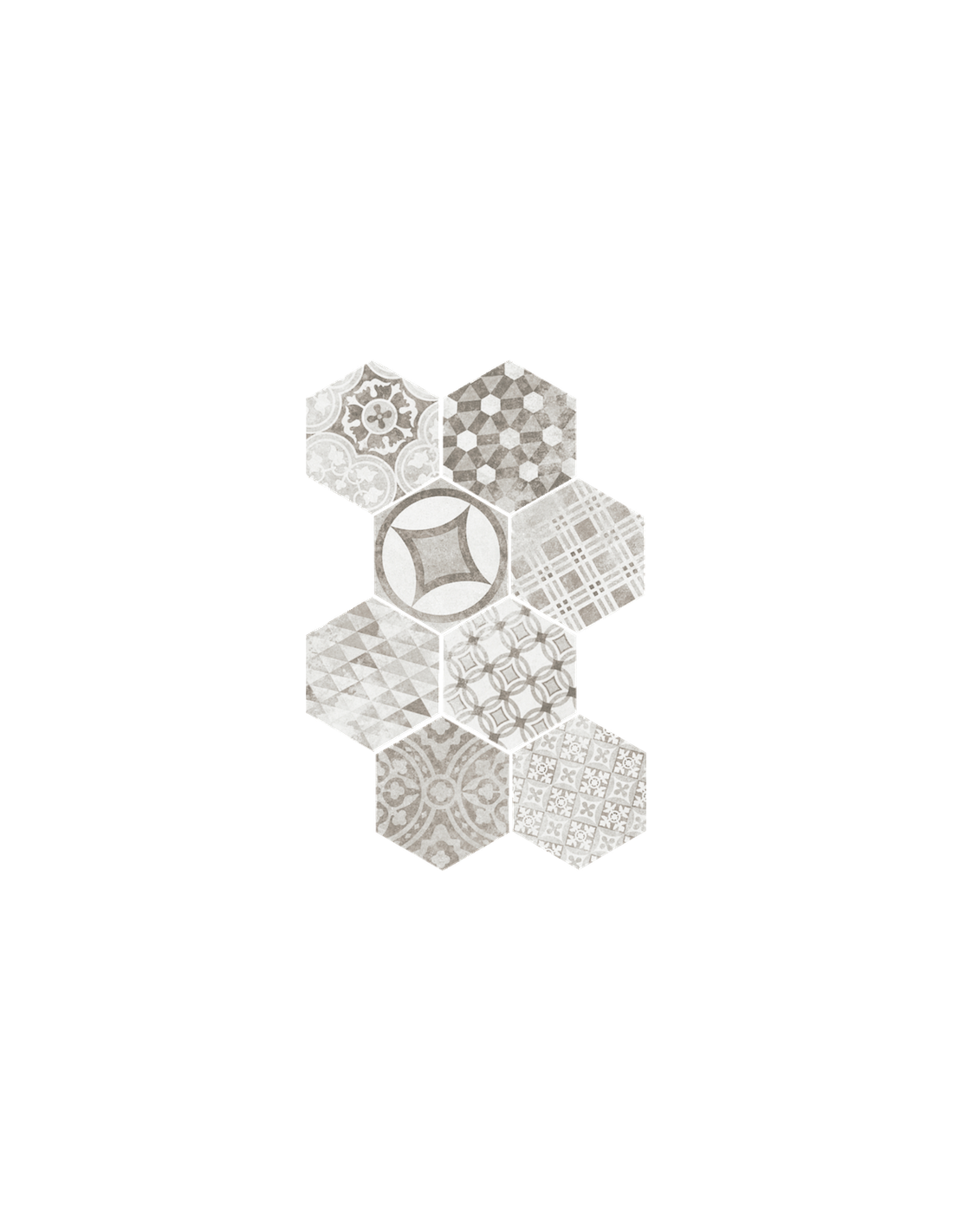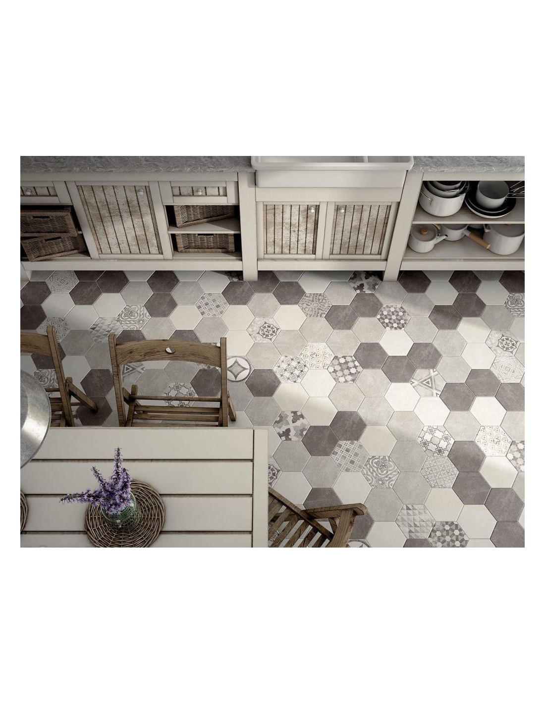 Gresie Hexagonala Hexatile Cement. #GresieHexagonala Cement #gresiepatchwork. Random designs. Gresie si #faiantahexagonala de living, bucatarie, baie.