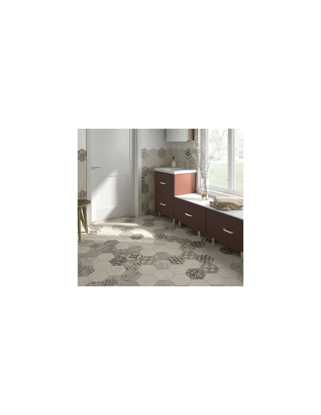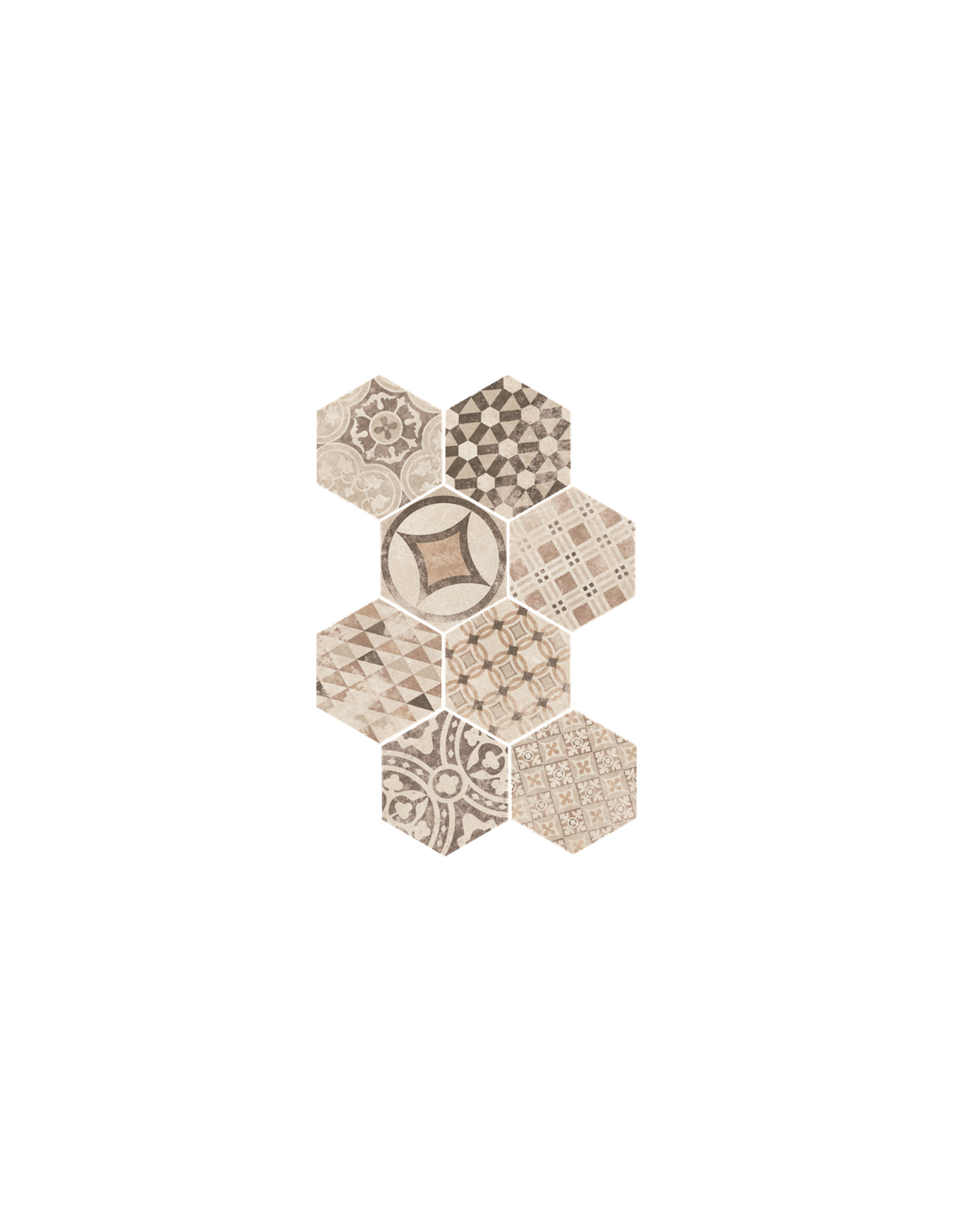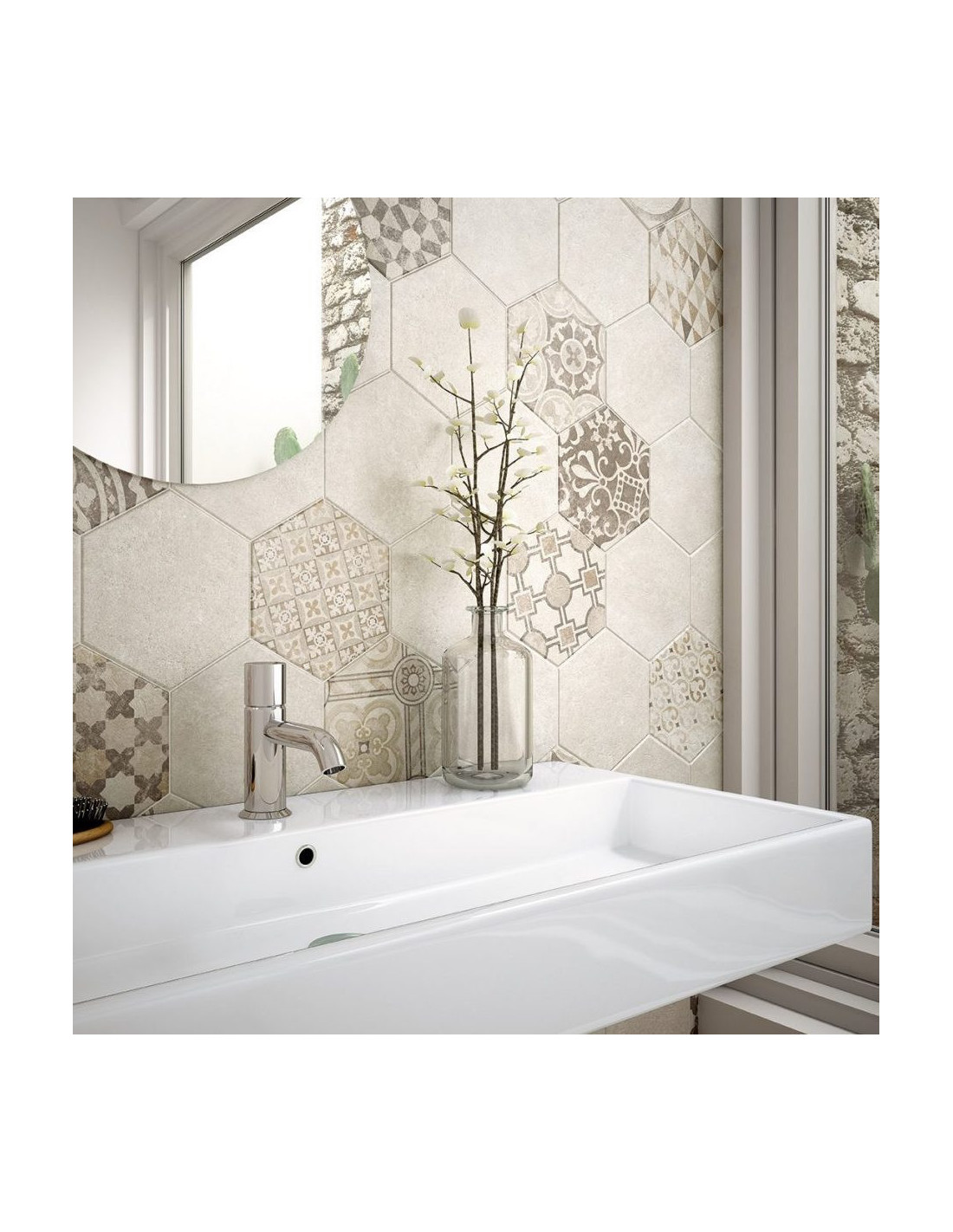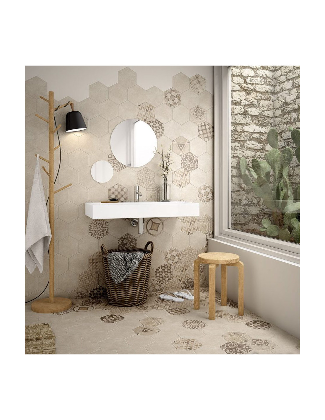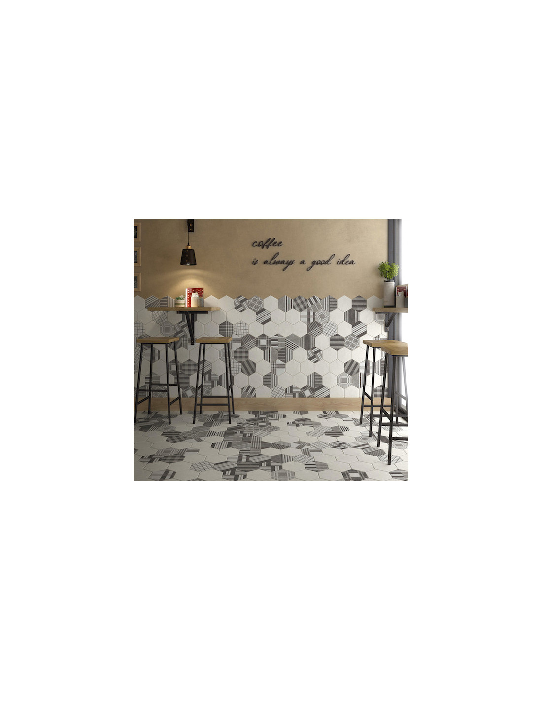 Gresie Hexagonala Hexatile Cement. #GresieHexagonala Cement #gresiepatchwork. Random designs. Gresie si #faiantahexagonala de living, bucatarie, baie.