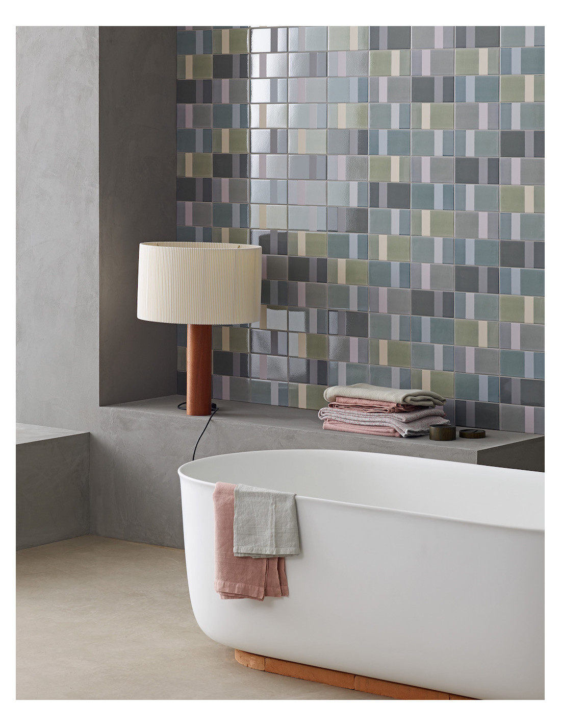 Faianta Mutina Diarama by Hella Jongerius Dimensiuni 9.4x18.7 cm, culori: Ash Light, Ash Dark, Sky Light, Sky Dark, Maize Light, Maize Dark, Blush Light, Blush Dark, Chulk, Iron, Dusk, Grey Chroma, Black Chroma #Mutina#Diarama
