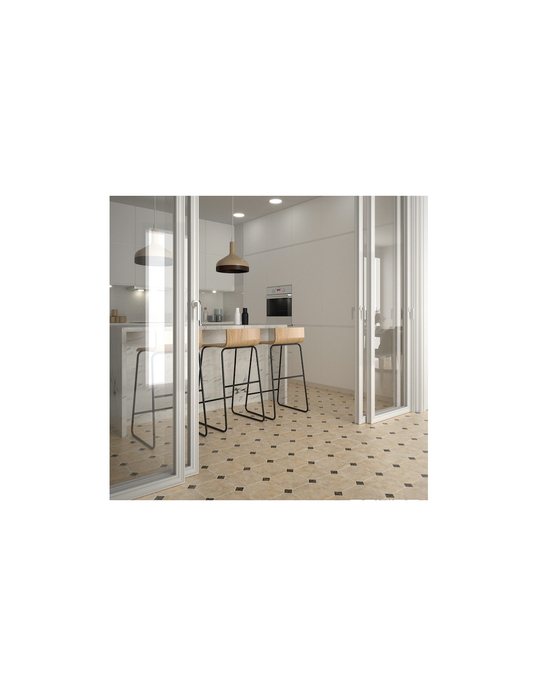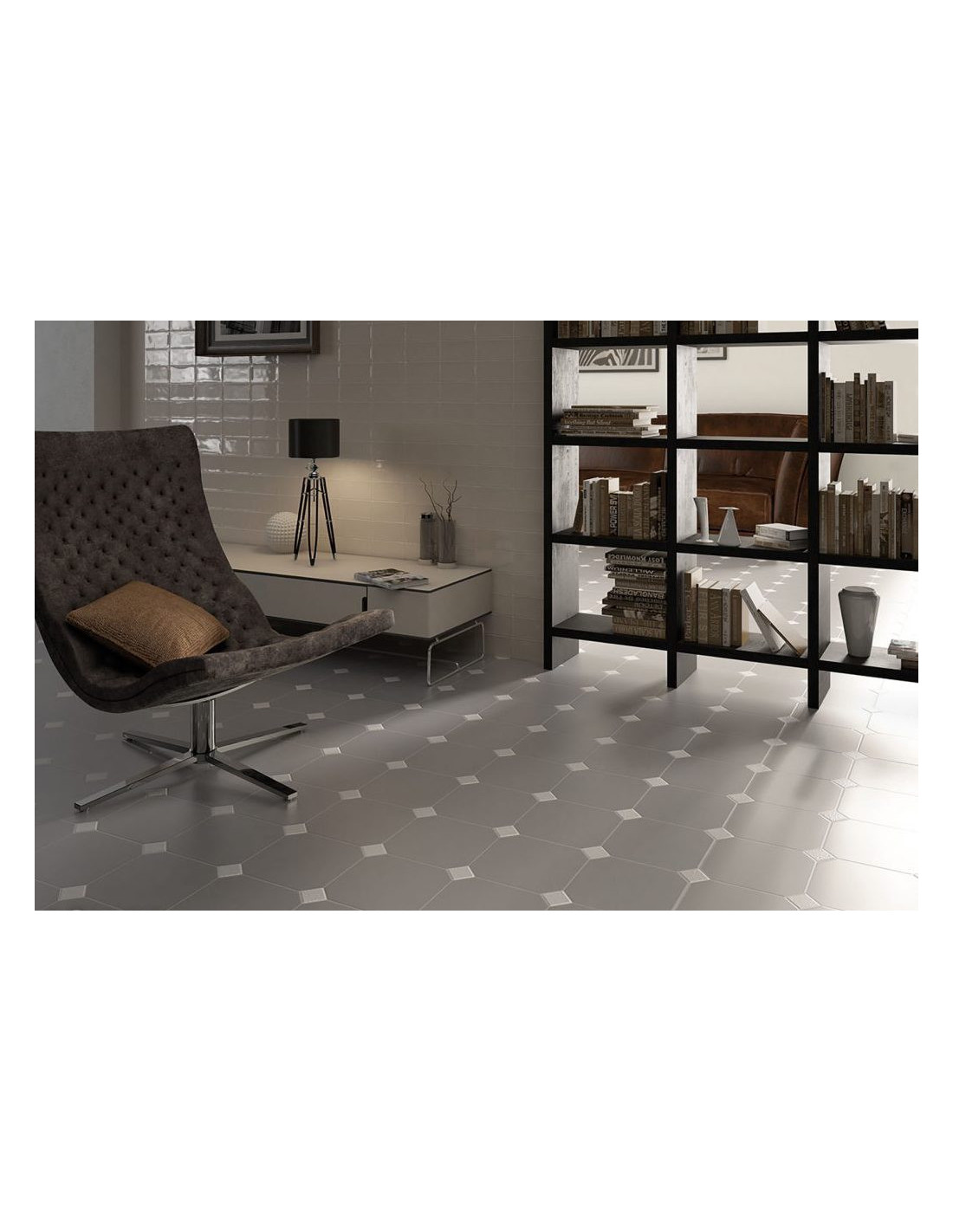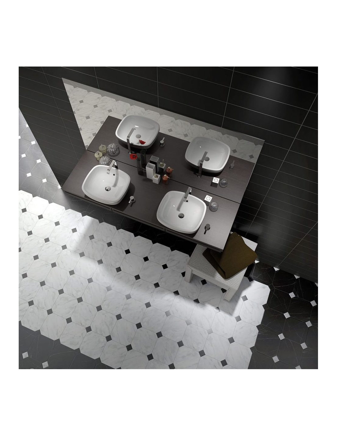 Gresie Octogonala Equ Octagon. Gresie #octogonala de 20x20 cm, cu finisaj mat alb, negru, gri si finisaj mat marmorat alb, negru si beige. #gresieoctogonala de baie, bucatarie si living.