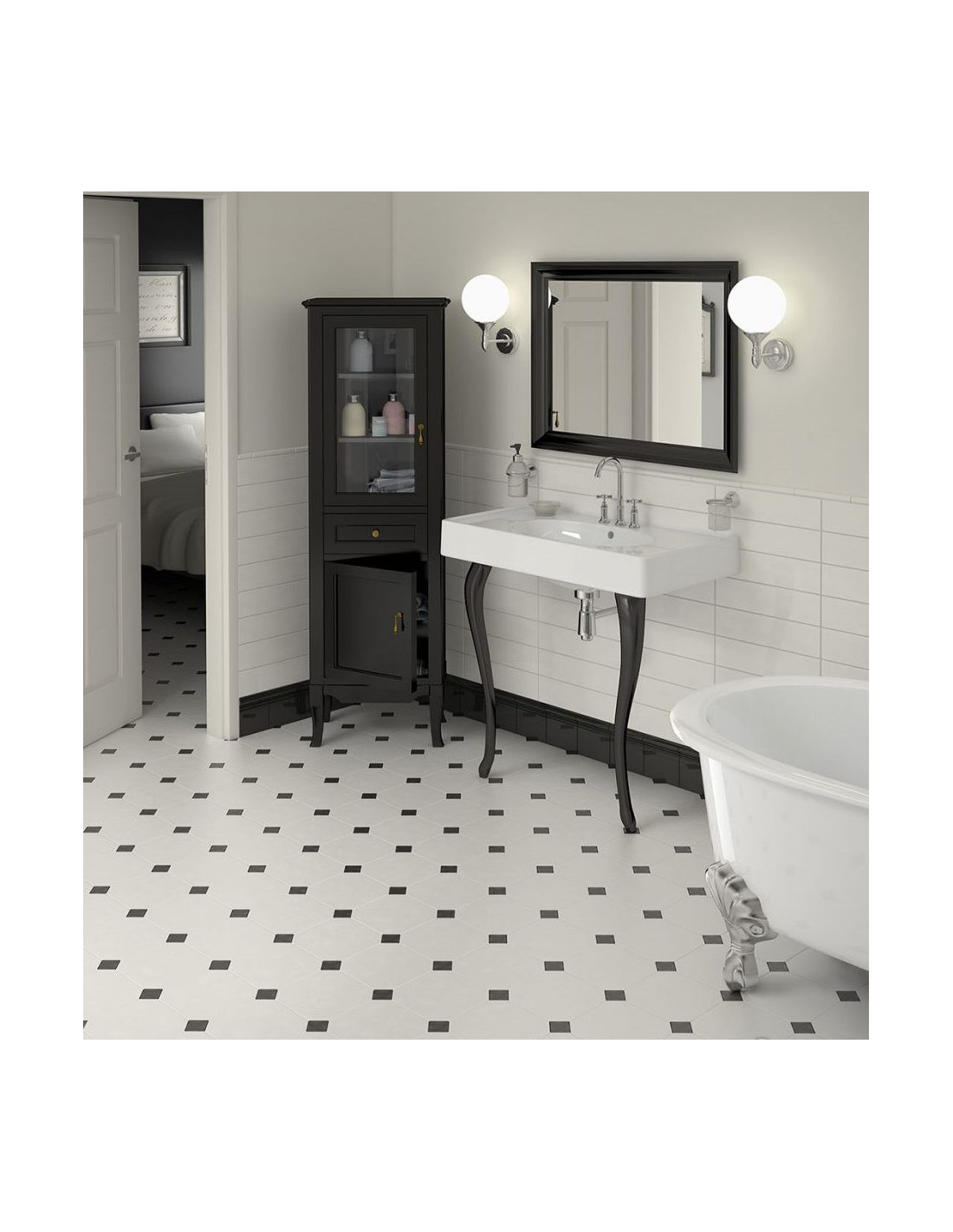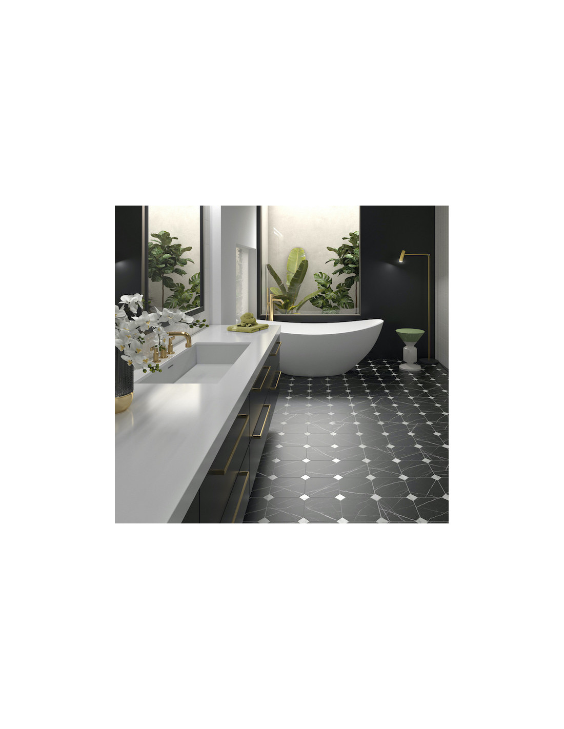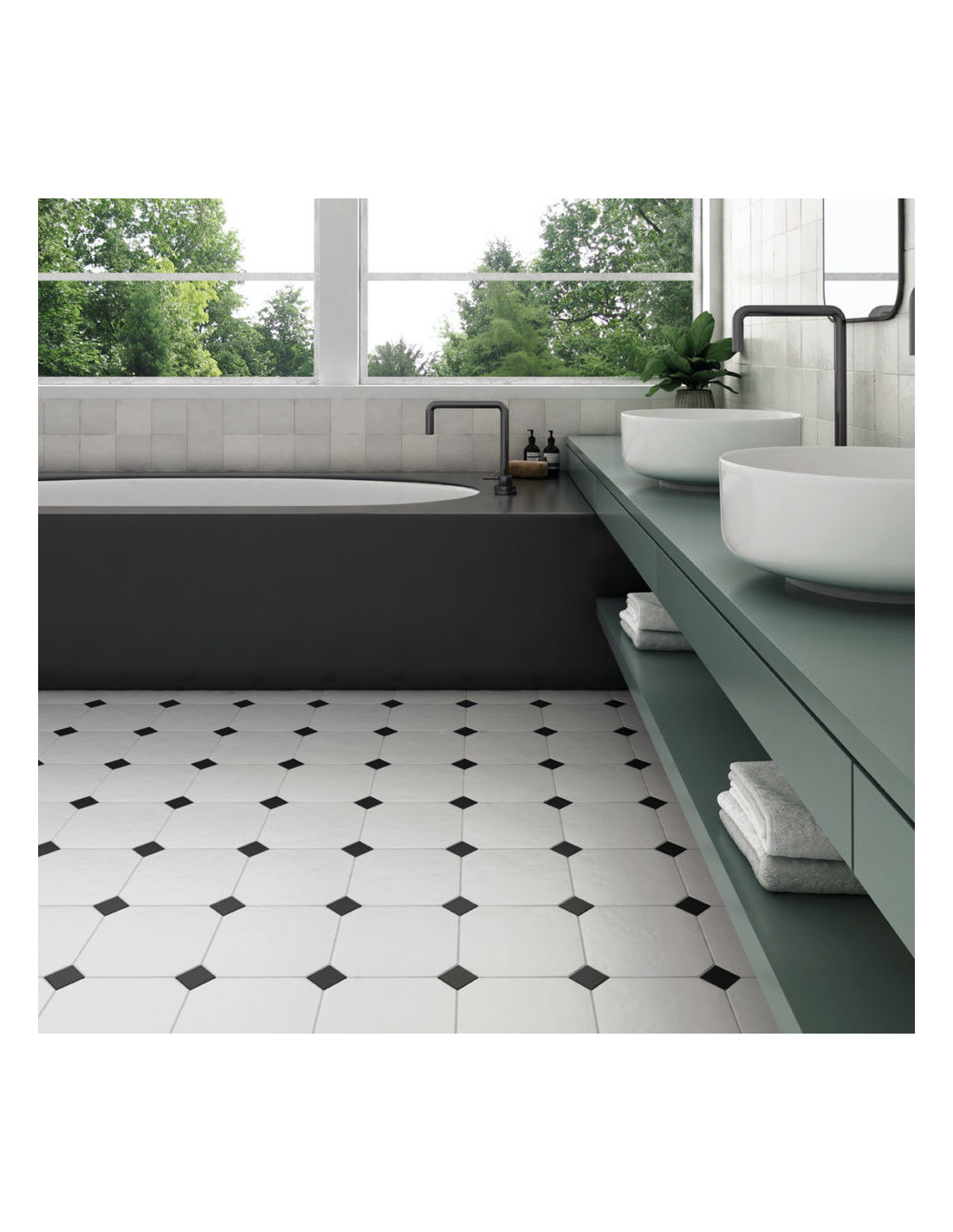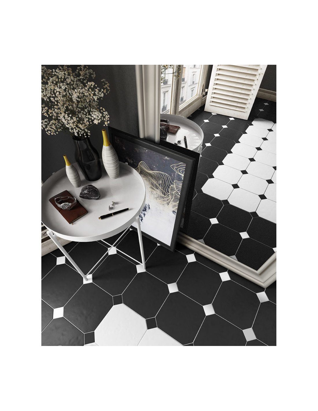 Gresie Octogonala Equ Octagon. Gresie #octogonala de 20x20 cm, cu finisaj mat alb, negru, gri si finisaj mat marmorat alb, negru si beige. #gresieoctogonala de baie, bucatarie si living.