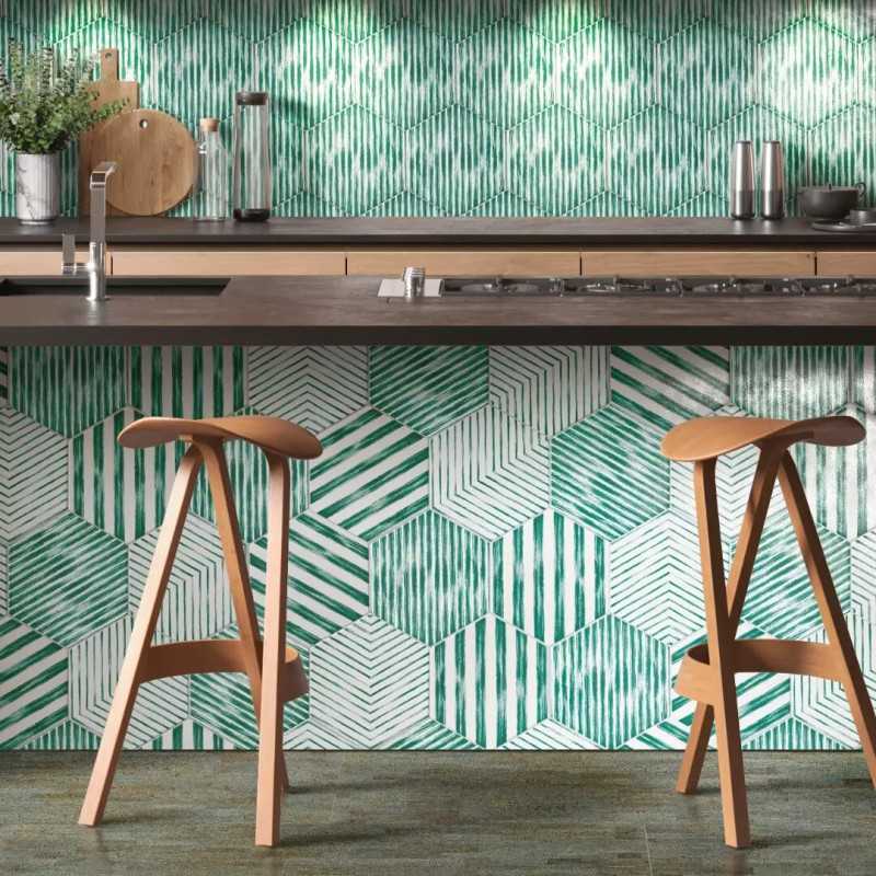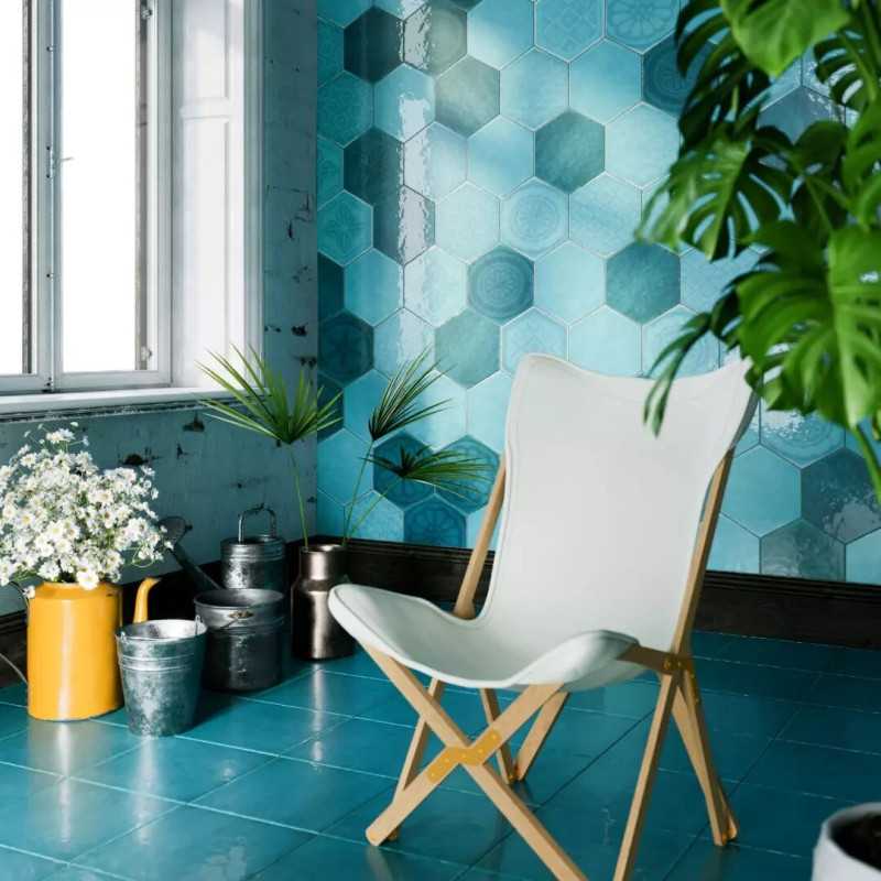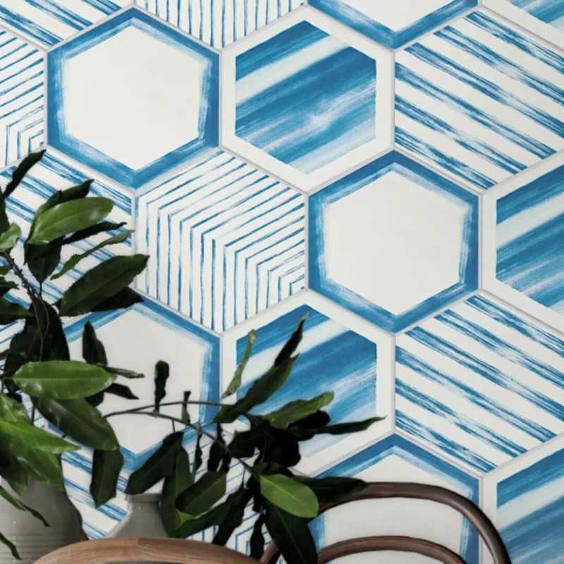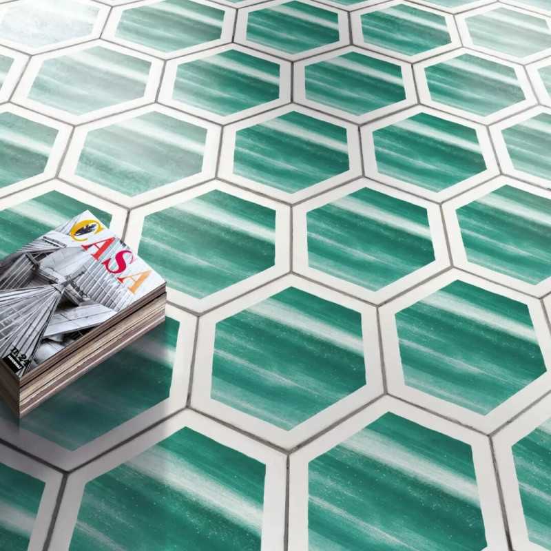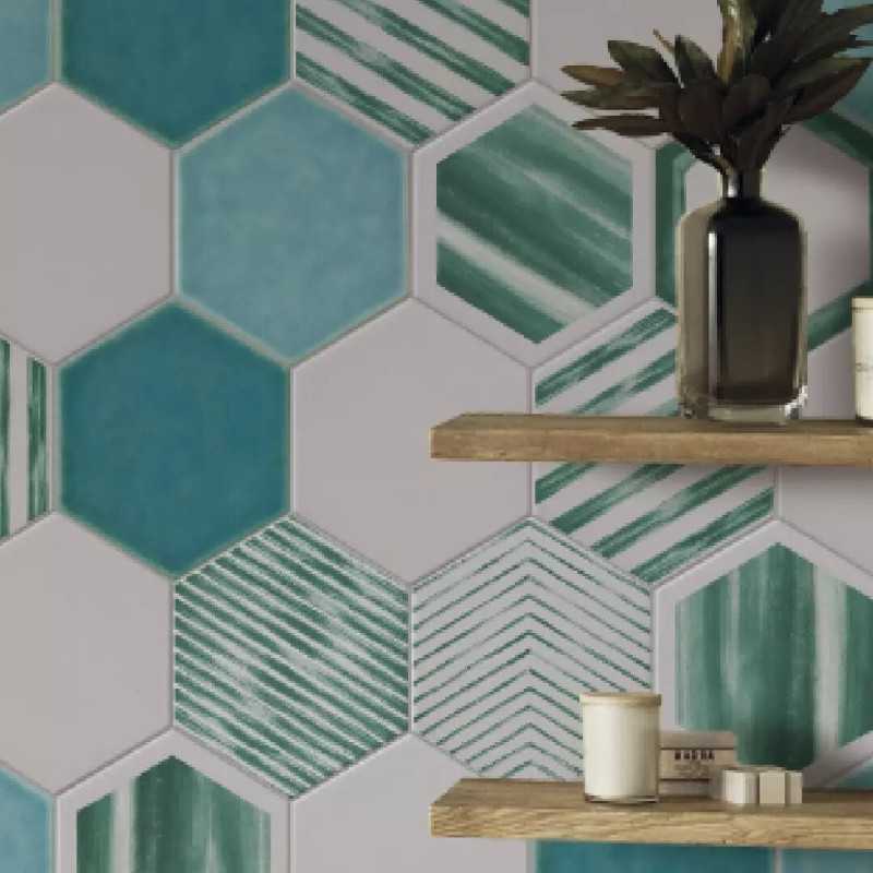 Faianta Gresie Sardinia. Gresie faianta hexagonala patchwork. Culori: Bianco, Giada, Acqua, Azzurro mare, Turchese.