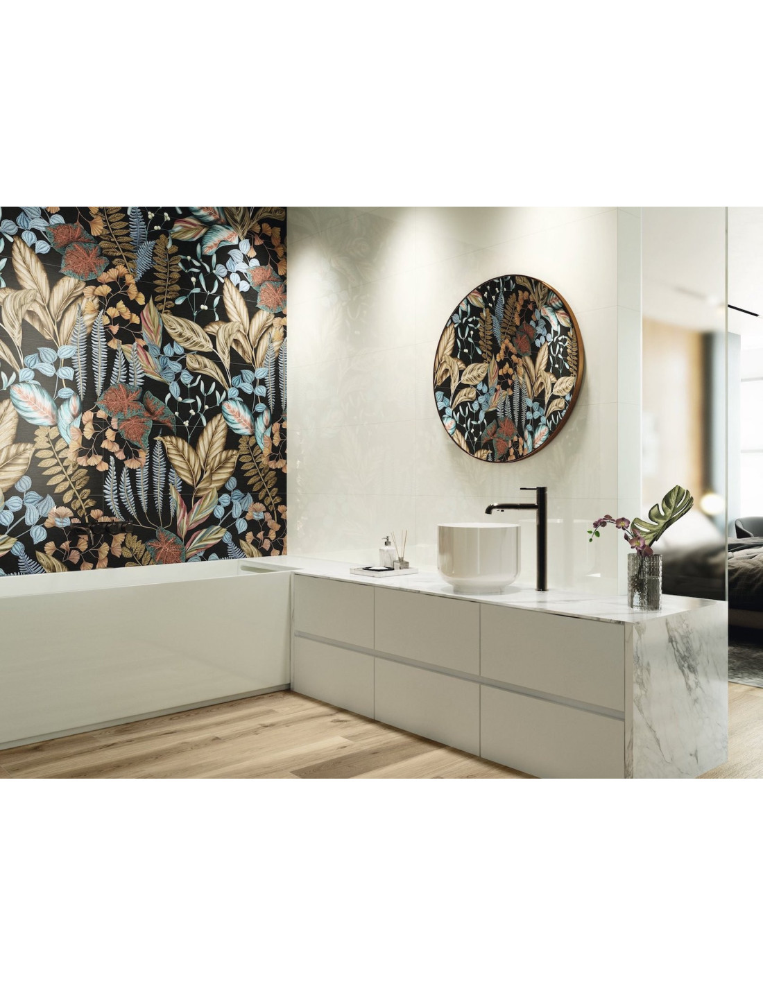 Faianta Silk 40x120 cu aspect de tapet, dimensiuni 40x120 cm. Faianta cu print vegetal. #faiantatapet Pentru informatii legate de preturi si termene de livrare va rugam sa ne contactati pe e-mail la adresa info@progettocasa.ro sau telefonic la numarul: 0744.494.094