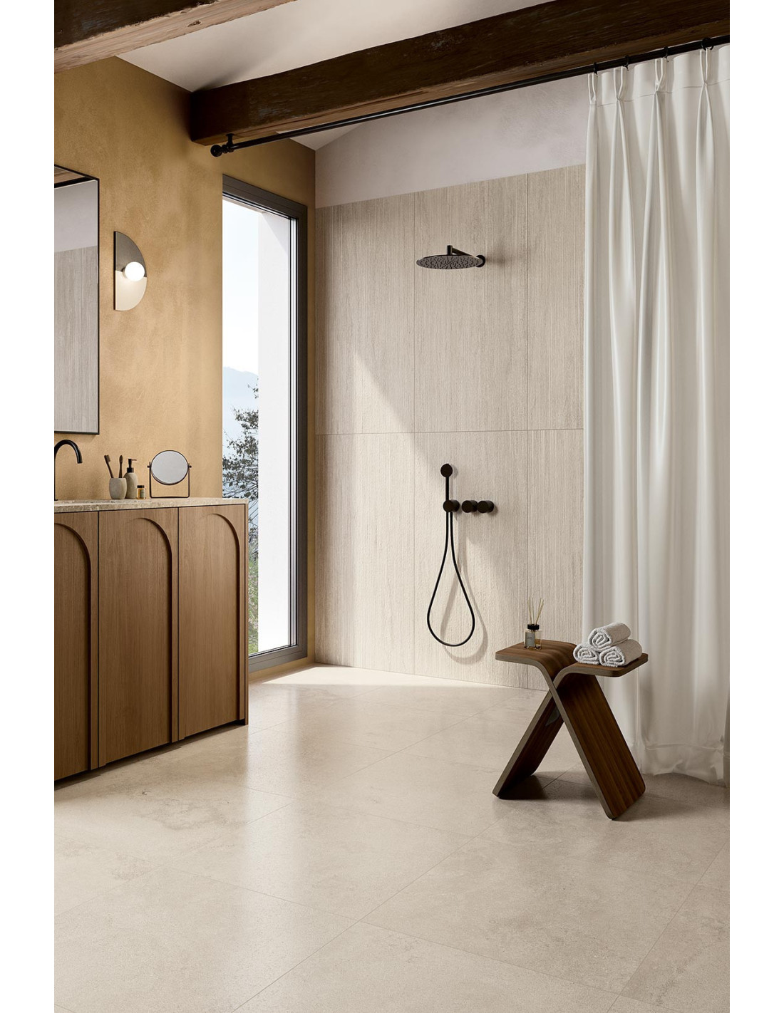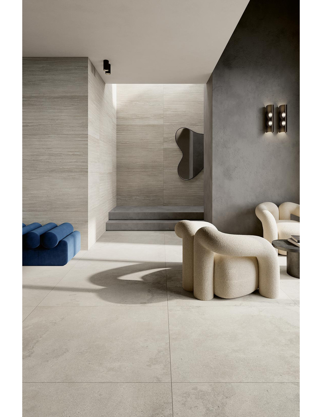 Gresie Faianta Versatile Stone cu dimensiuni: 120.8x120.8, 60.4x120.8, 60.4x60.4, 90.6x90.6, 40.3x90.6, 30.2x60.4 cm. Culori: Bianco, Beige, Grigio, Argilla