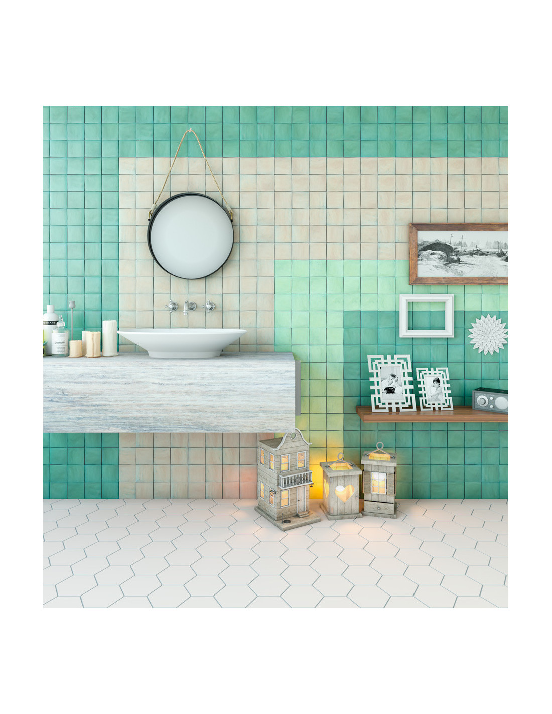 Faianta Zelij Special cu dimensiuni 10x10 cm, margini neregulate, culori: Agua Marina, Antic Amarillo, Antic Azul, Lava Verde, Naranja Dif, Pergamon, Rojo Antiguo, Verde Cobre, Via Lactea