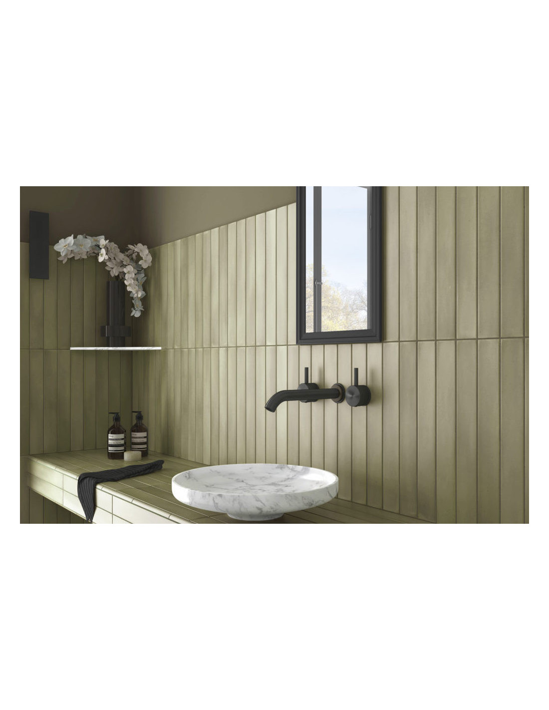 Faianta Massimo cu dimensiuni 5x40 cm, finisaj mat. Culori: White, Almond, Siena, Grey, Pink, Cotto, Verde, Blue, Black.
