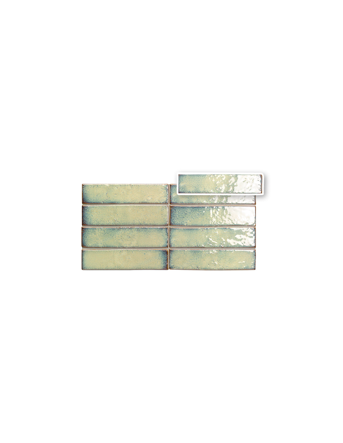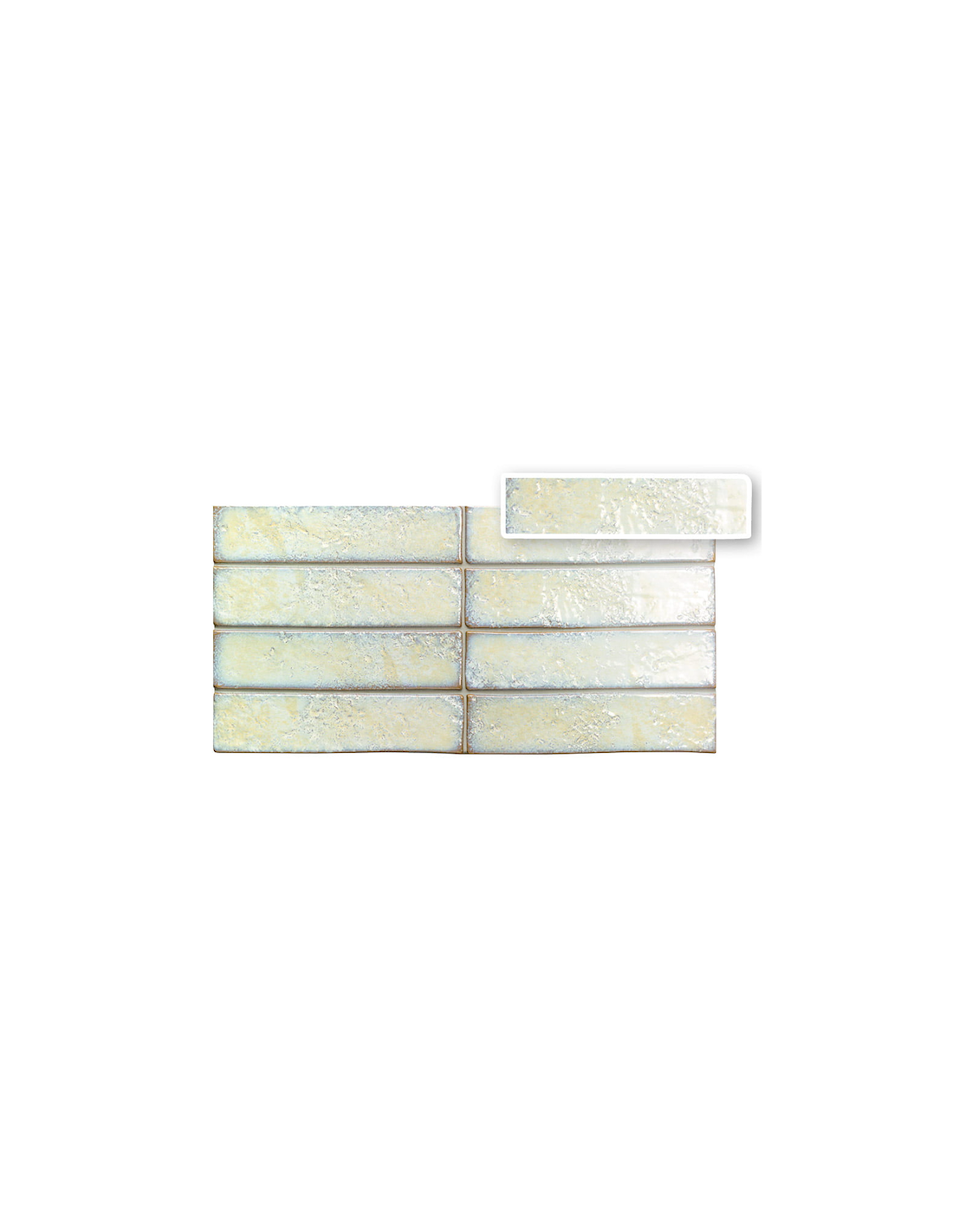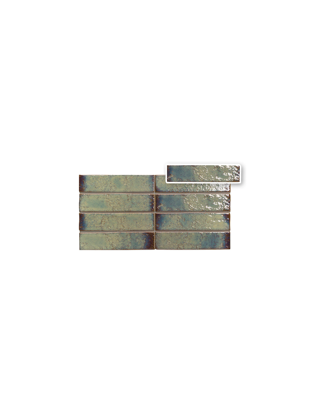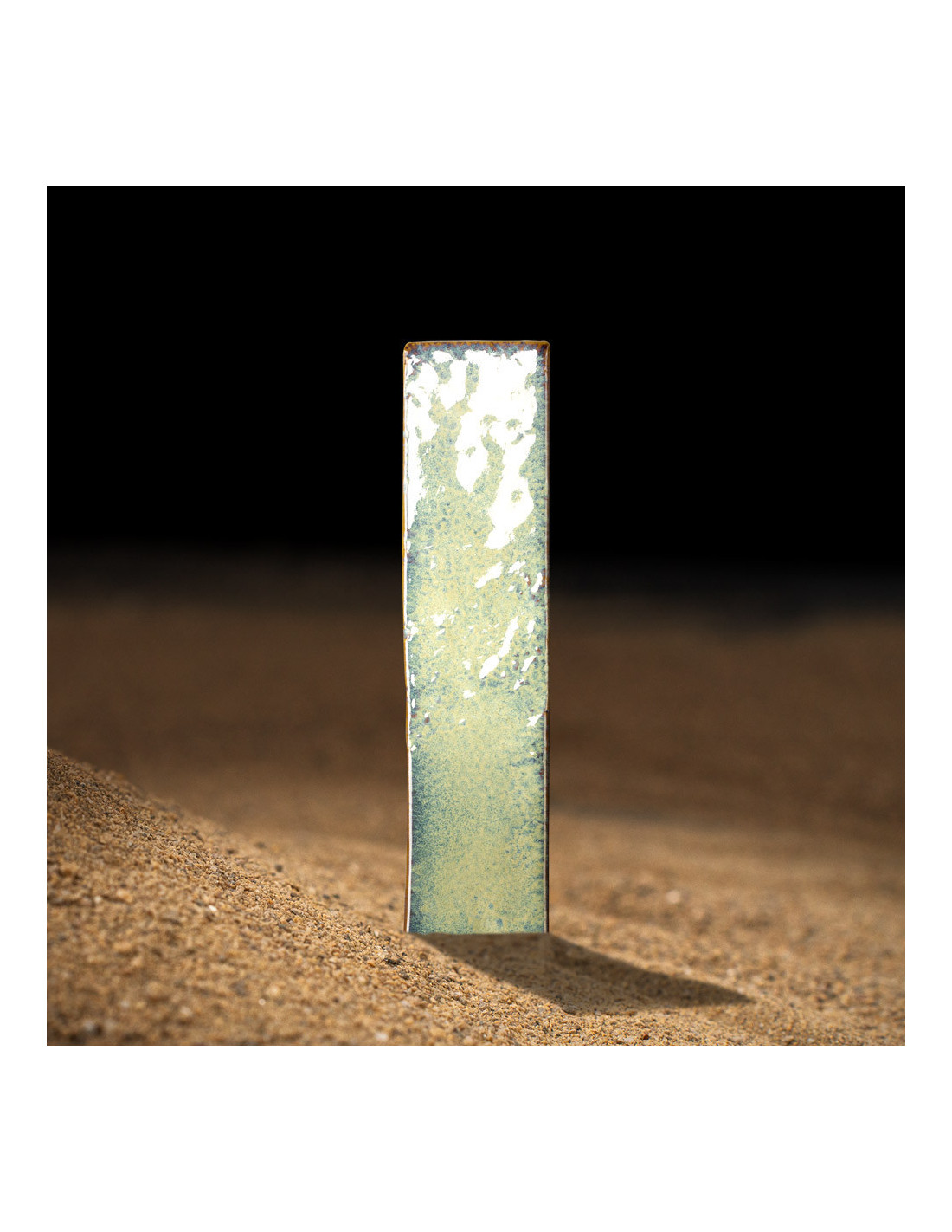 Faianta Souk cu dimensiuni 6x25 cm. Finisaj lucios, antichizat, metalizat, cu margini neregulate.