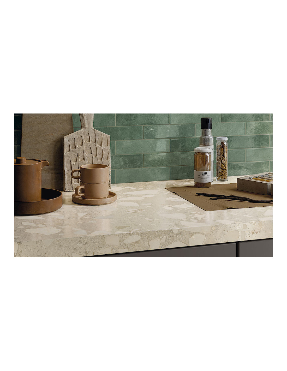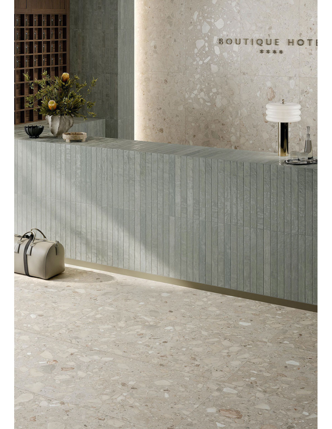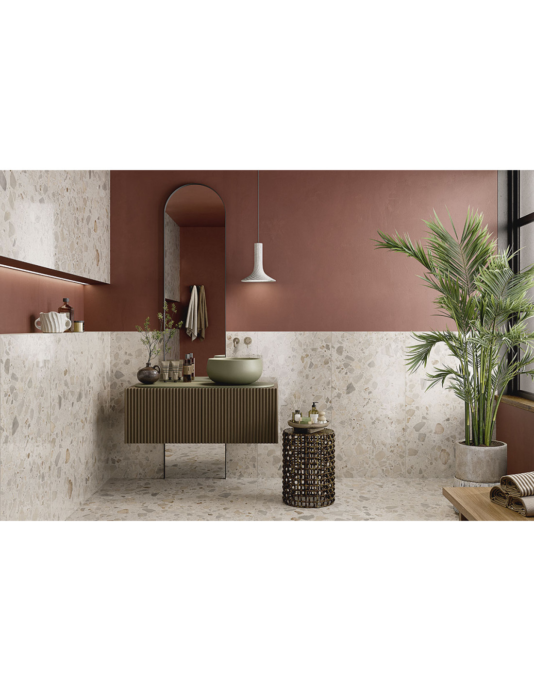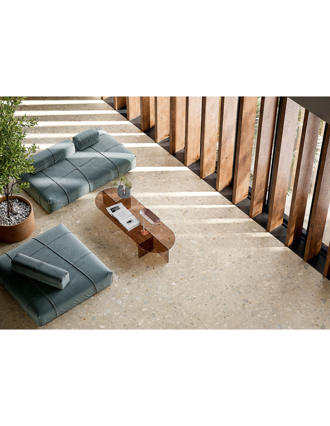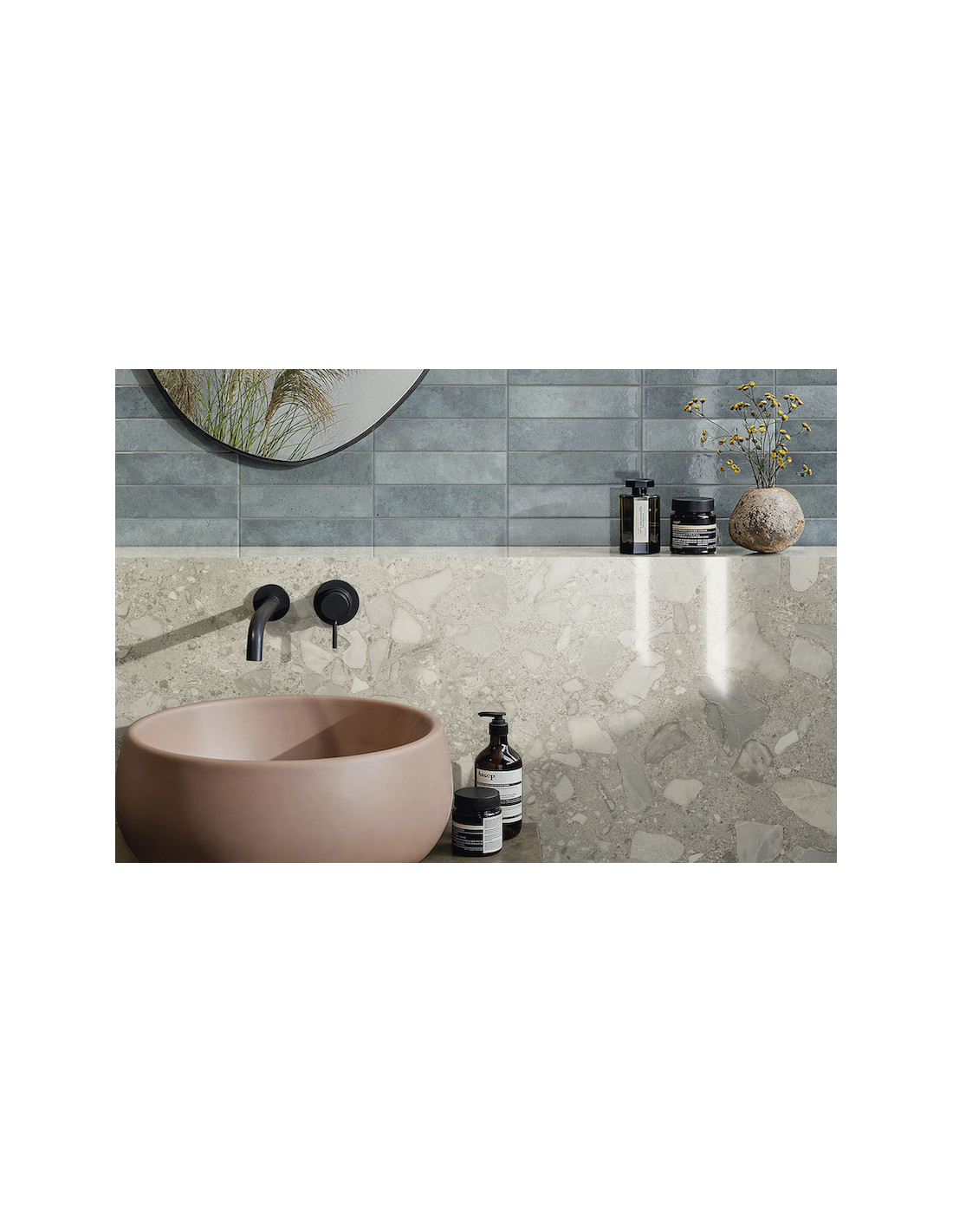 Gresie cu aspect de terrazzo.